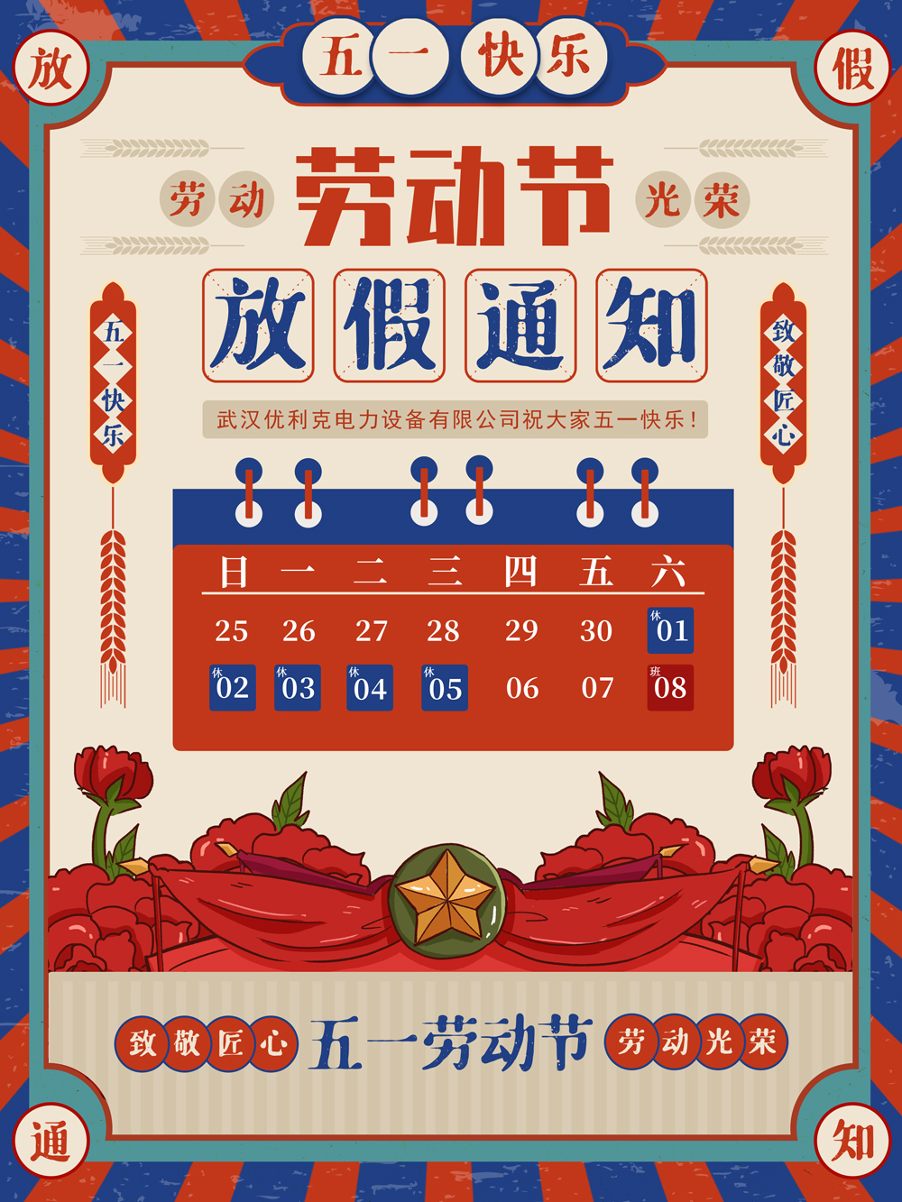 在這難得的歡慶之時(shí),武漢優(yōu)利克電力設(shè)備有限公司全體員工祝您節(jié)日愉快!