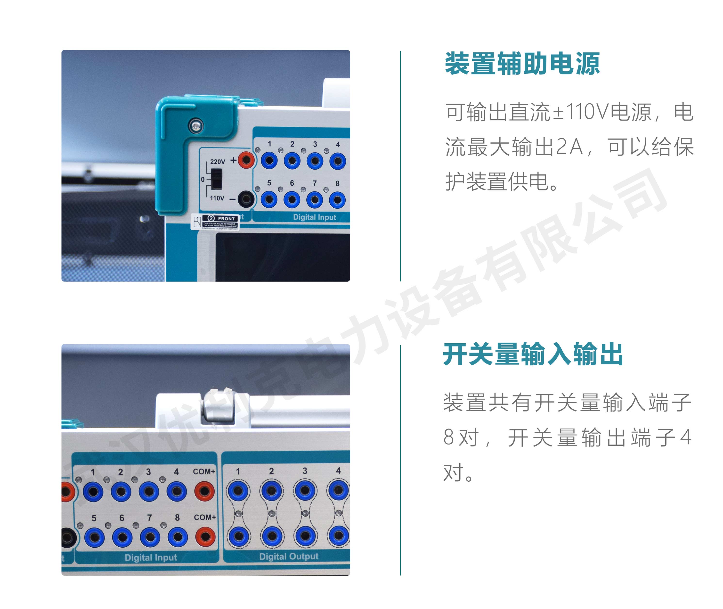 11、配有獨立專用直流輔助電壓源輸出,輸出電壓分別為110V(1A),220V(0.6A)。以提供給需要直流工作電源的繼電器或保護裝置使用。