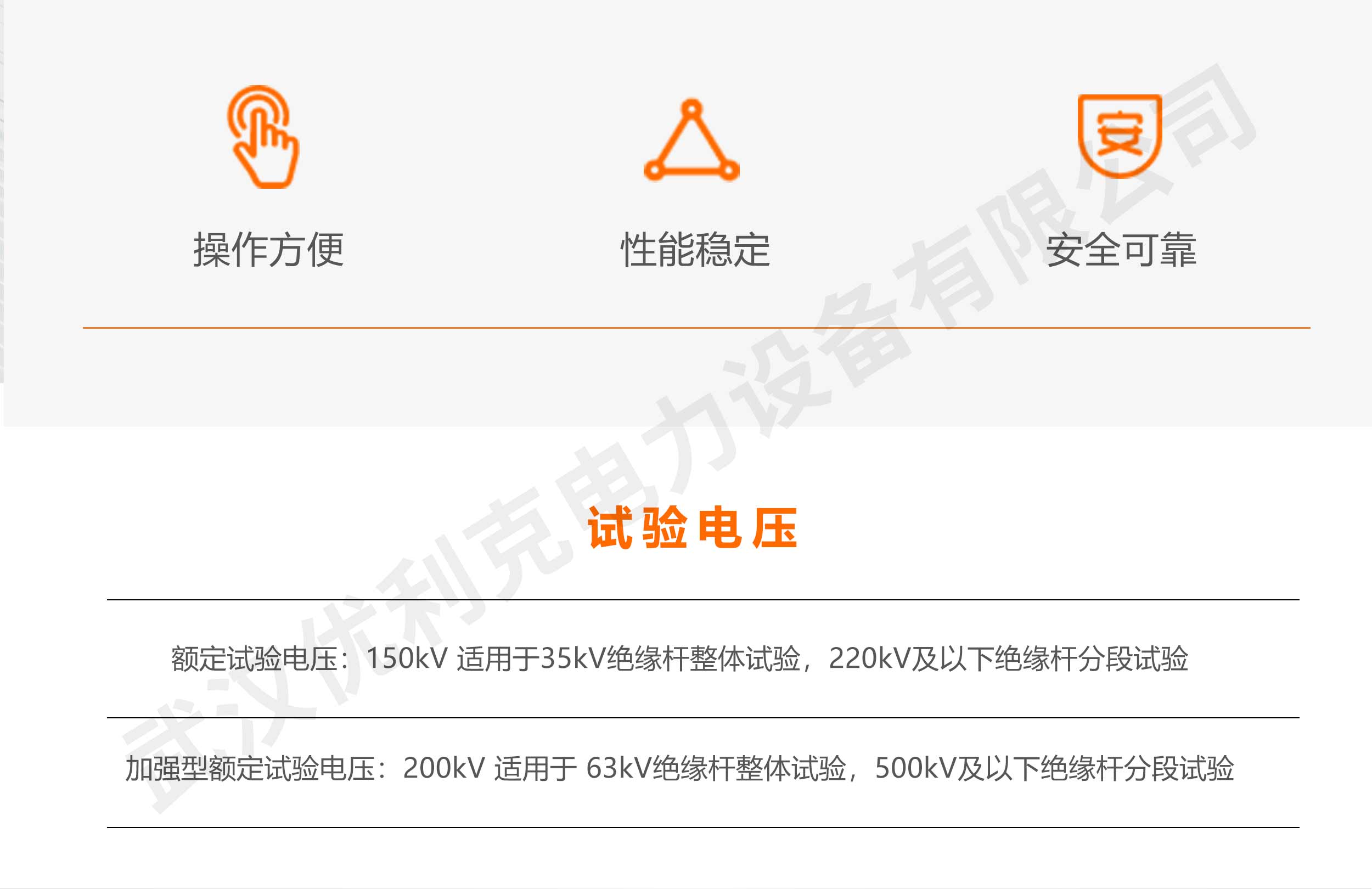 加強型額定試驗電壓:200kV 適用于 63kV絕緣桿整體試驗,500kV及以下絕緣桿分段試驗