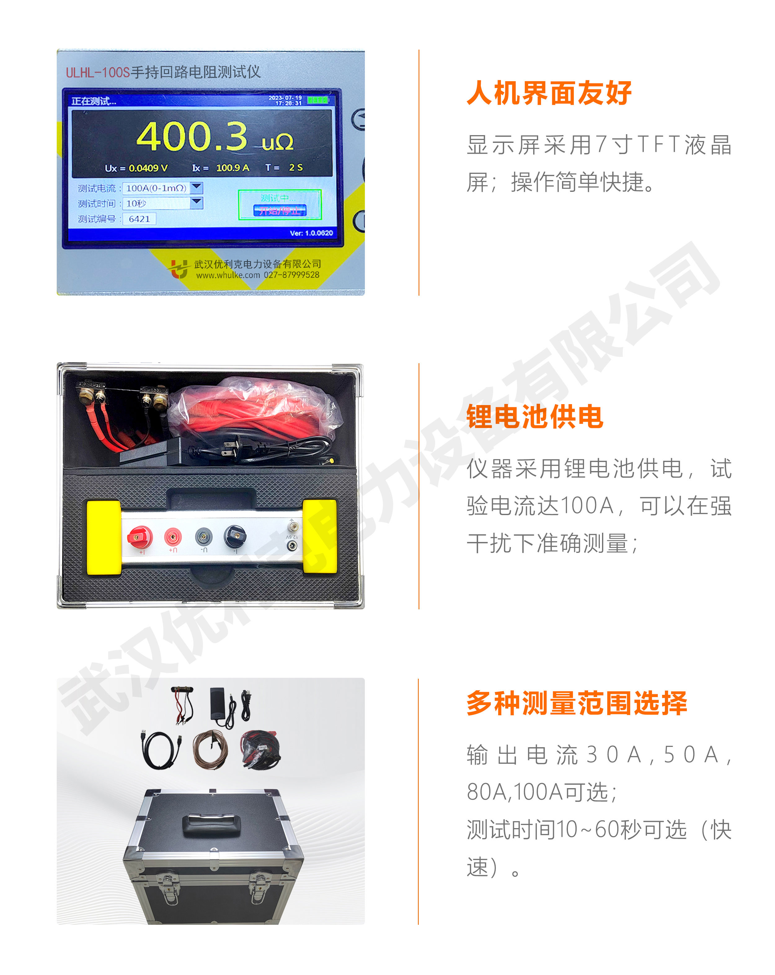 優利克電力 產品中心 斷路器/高壓開關試驗設備 ULHL-100S手持回路電阻測試儀