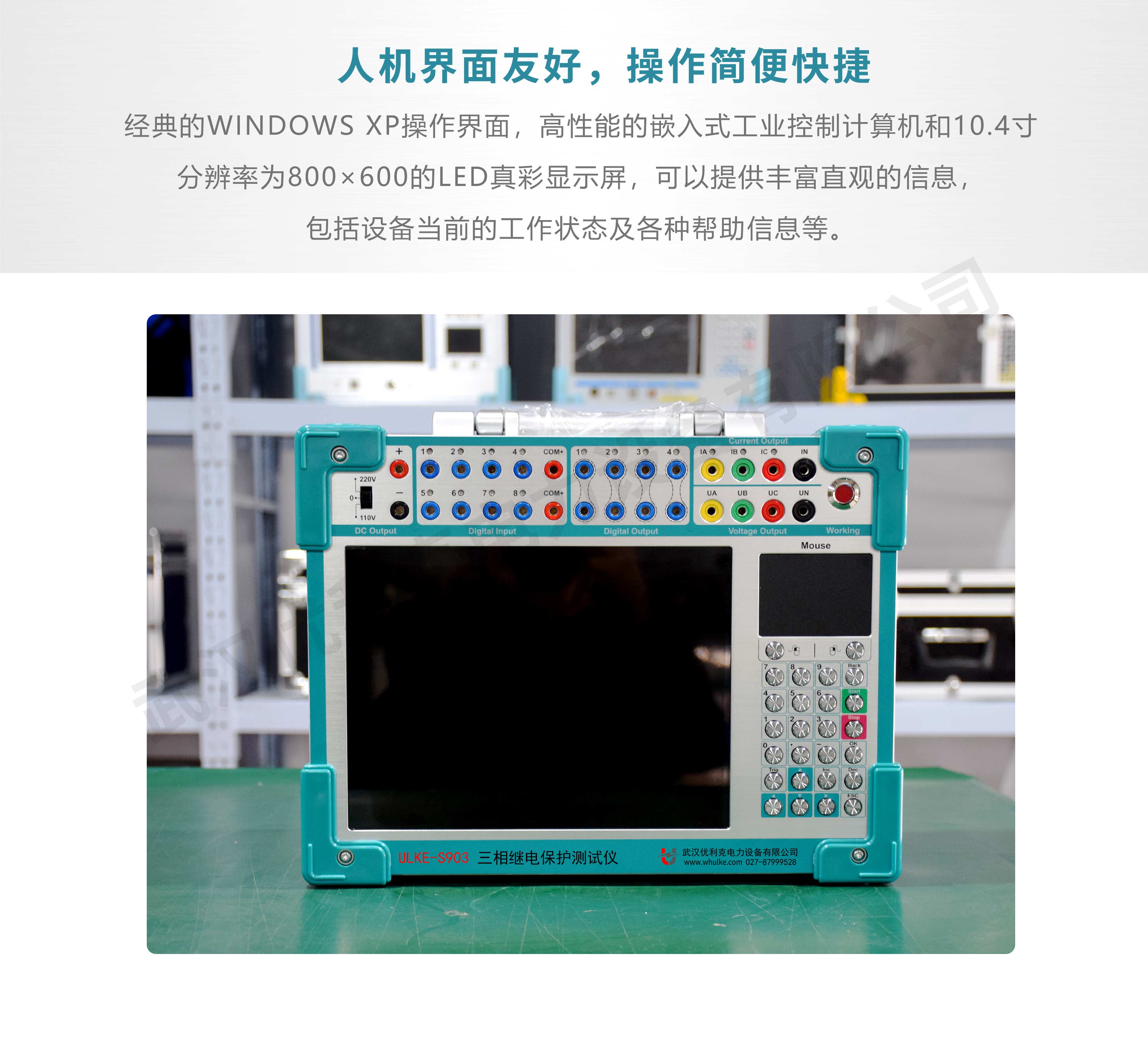 3.經(jīng)典的Windows XP操作界面,人機(jī)界面友好,操作簡(jiǎn)便快捷;高性能的嵌入式工業(yè)控制計(jì)算機(jī)和10.4寸分辨率為800×600的LED真彩顯示屏,可以提供豐富直觀的信息,包括設(shè)備當(dāng)前的工作狀態(tài)及各種幫助信息等。