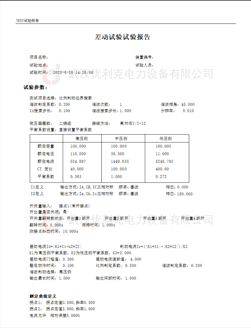設置多個制動電流點(如Ie、2Ie),觀察差動電流動作值,繪制比率制動曲線。