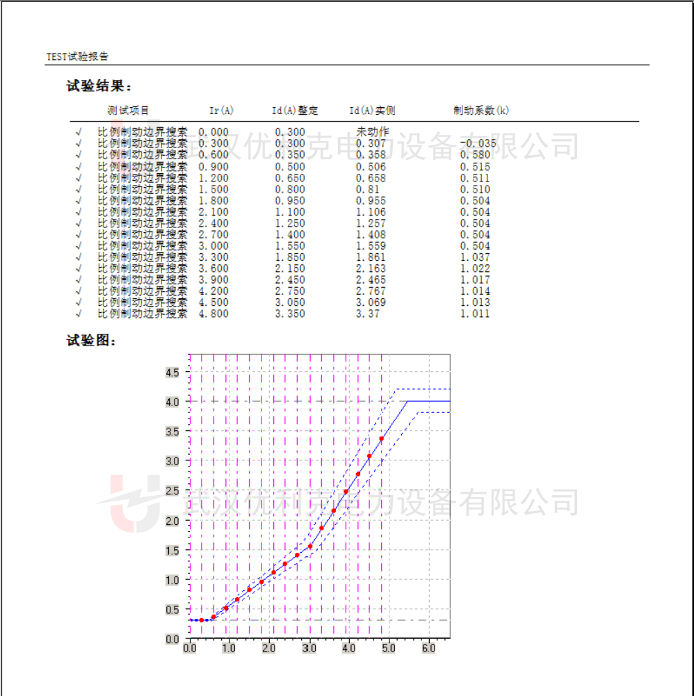 術(shù)說明書中給出的標(biāo)準(zhǔn)比率制動特性曲線進(jìn)行對比,兩者應(yīng)基本吻合。誤差范圍一般要求在 ±5% 以內(nèi),例如,如果標(biāo)準(zhǔn)曲線在某一