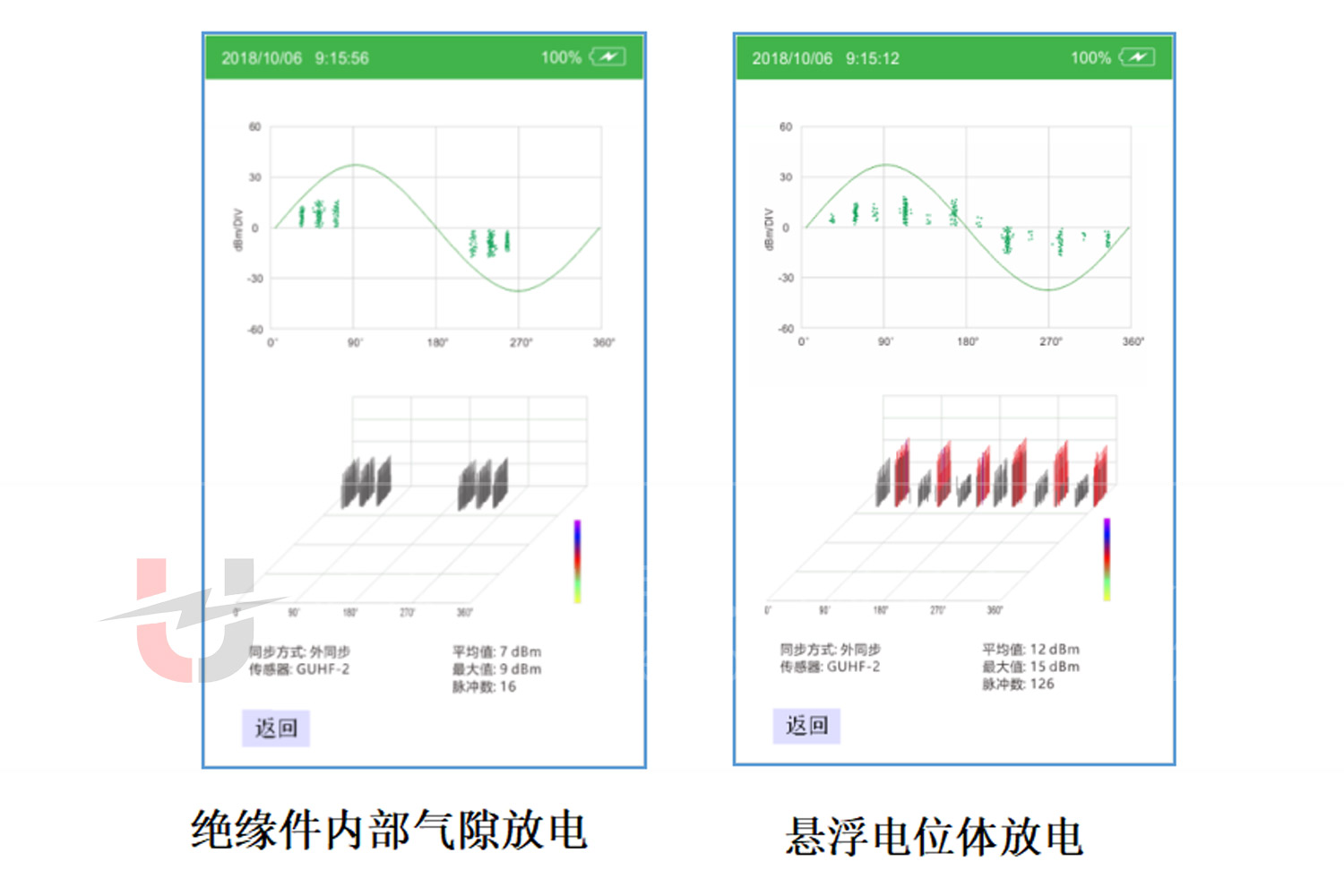 過分析PRPD圖譜的形狀和特征,可以判斷局部放電的類型,如電暈放電、沿面放電、內部放電等;相位分辨脈沖序列圖(PRPS)則