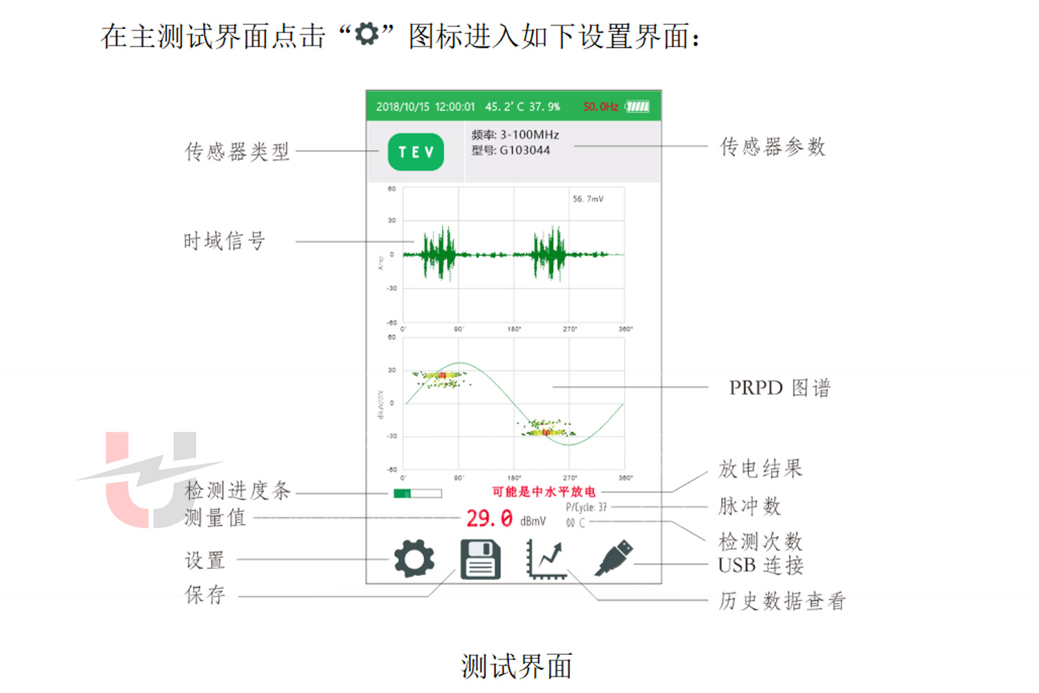 辨圖譜(PRPD)、相位分辨脈沖序列圖(PRPS)等,方便操作人員進行數據分析和判斷。操作按鍵則用于用戶與儀器進行交互,實
